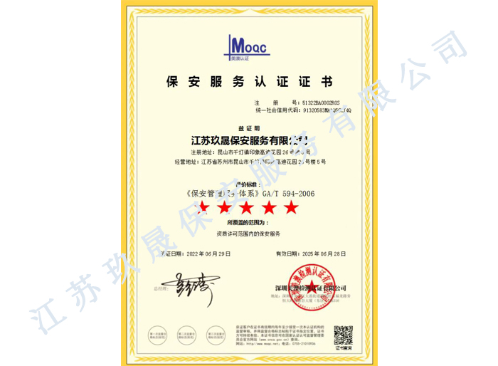 江蘇玖晟保安服務有限公司位于昆山市千燈鎮。注冊資金:5000萬,擁有省公安廳頒發的保安服務許可證的企業,是昆山市保安協會常務理事單位。